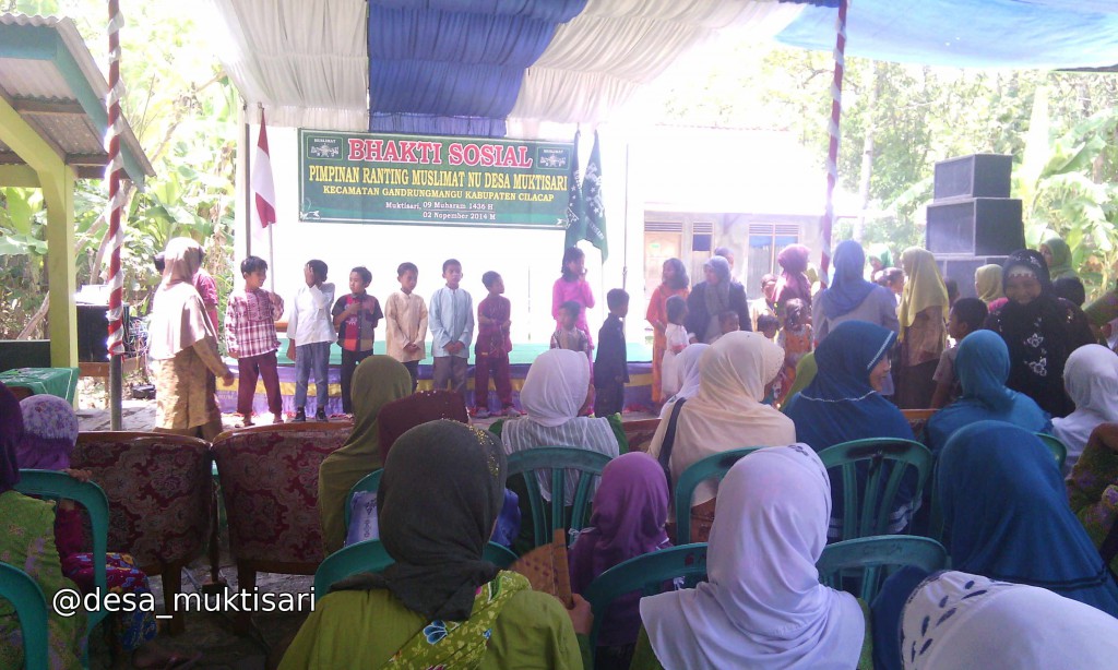 Muktisari, Gandrungmangu – Tahun baru hijriyyah telah datang, ummat Islam nampak antusias menyambut. Hal ini direalisasikan oleh Muslimat NU Ranting Muktisari pada Ahad, 02 November 2014 di komplek masjid Al Istimror, Desa Muktisari, Kecamatan Gandrungmangu, Kabupaten Cilacap, Jawa Tengah dengan menyelenggarakan pengajian yang bertemakan BHAKTI SOSIAL.