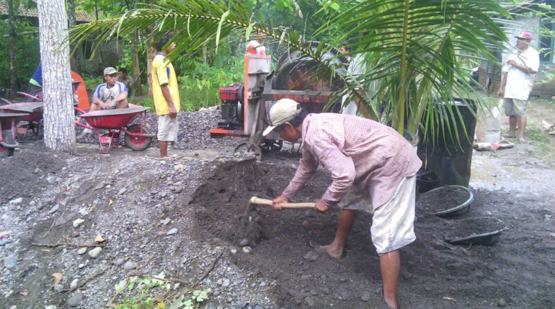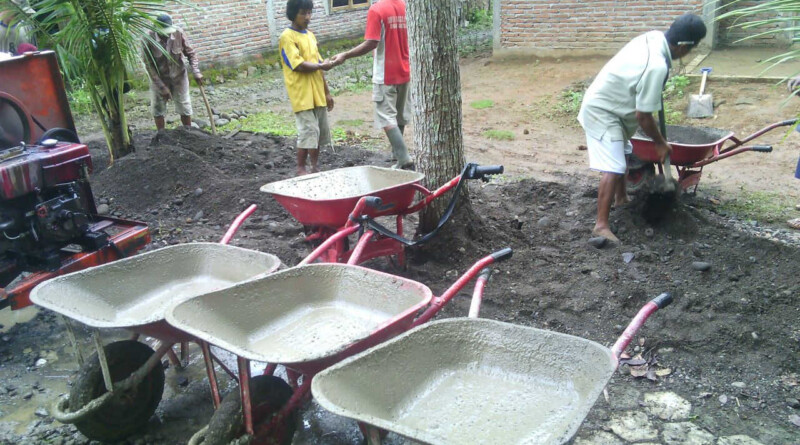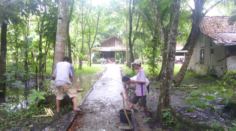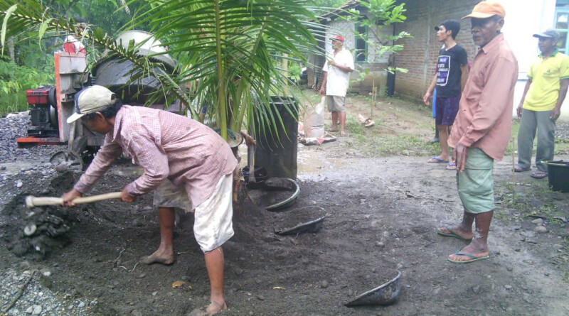 Muktisari, Gandrungmangu – Ahad, 28 Desember 2014 warga RT 06 RW 02, dusun Bendagede, desa Muktisari, kecamatan Gandrungmangu, kabupaten Cilacap nampak sedang melakukan kerigan (kerja bakti) pengecoran jalan setapak sepanjang 106 m. “Ini adalah pengecoran yang ke-6 kali dengan anggaran dana Rp 6.000.000,” ujar Tino, Ketua RT 06. “Pengecoran kali ini menghabiskan bahan pasir 2 rit, splite 1 rite,” sambung Basit Nuha (32), warga RT 06.